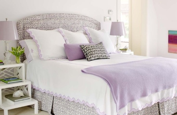 Phòng ngủ thanh lịch và sang trọng vô cùng khi kết hợp màu trắng và sắc tím nhạt.