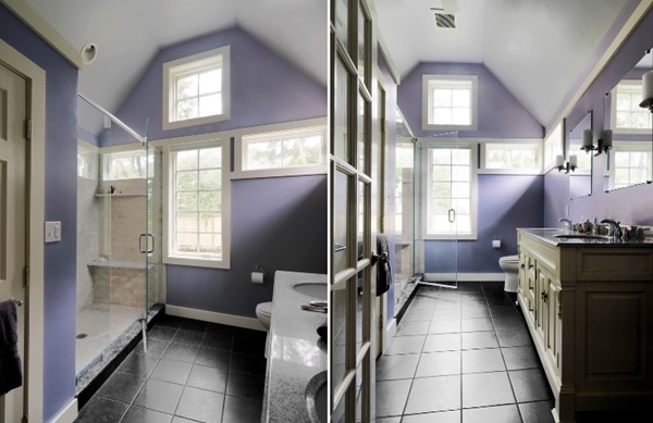Một góc phòng tắm được trang trí bằng màu tím mộng mơ, tại sao không?