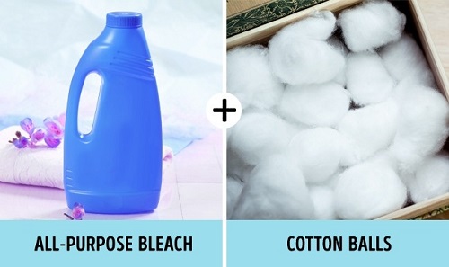 Dùng bông ngâm trong nước tẩy rửa rồi để lau xuống sàn, vừa làm bóng sàn và vừa thấm nước được nước đọng lại. Bạn có thể thay thể bằng nước súc miệng hoặc kem đánh răng.