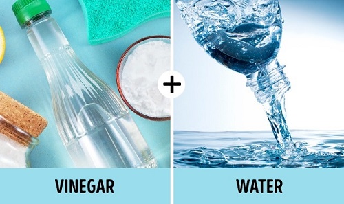 Dùng giấm hòa vào nước ấm, rồi dùng cây lau nhà hoặc vật tương tự nhúng vào dung dịch và lau sạch trần. Để đề phòng, một chiếc kính bảo hộ cũng là điều cần thiết.