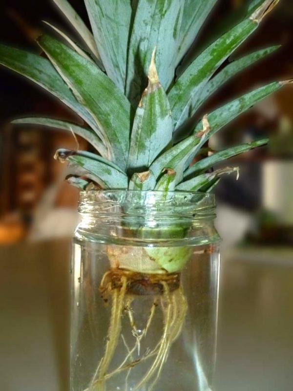 Khi rễ dứa đã dài vài cm, bạn có thể cây dứa ra trồng vào chậu đất. Nếu bạn trồng quá sớm, có thể cây sẽ bị chết, do vậy lưu ý trồng cây khi rễ đã mọc đủ dài để có thể bám vào đất.