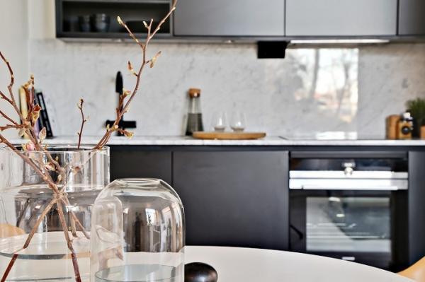 Những chi tiết nhỏ như đèn nến hay lọ thủy tinh đựng hoa cỏ luôn được thêm pha trong từng góc nhỏ ở nơi nấu nướng và ăn uống giúp khu vực này luôn đẹp xinh và cá tính.