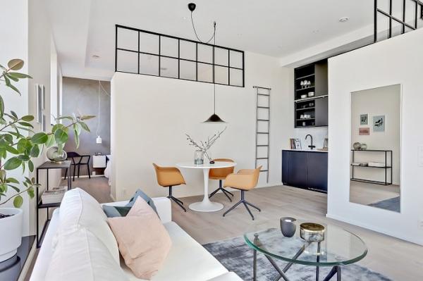 Phân chia không gian hợp lý, lựa chọn nội thất hiện đại, tiện nghi là những yếu tố không thể thiếu giúp căn hộ nhỏ thêm ấn tượng, hút mắt.Với khá nhiều lợi thế như khung cửa sổ rộng với ánh sáng tự nhiên luôn ngập tràn cùng với trần cao 3,3m đã giúp gia chủ dễ dàng phân chia các khu vực chức năng, mang đến sự tiện lợi, ấn tượng cho không gian nhỏ. Các thành viên trong gia đình luôn cảm thấy thoải mái và dễ chịu dù sống trong căn hộ không quá rộng rãi. Lối vào nhà Căn hộ tuy có diện tích vừa phải nhưng bằng nhiều giải pháp được tích hợp một cách thông minh đủ giúp cho tổ ấm thêm rộng rãi gấp nhiều lần so với diện tích thực. Lối vào nhà khá thông thoáng, ánh sáng tự nhiên ngập tràn giúp tông chủ đạo với màu trắng của toàn bộ căn hộ tạo nên vẻ đẹp hiện đại và thoáng sáng. Tận dụng một bên tường đặt kệ thấp giúp những đồ dùng, vật dụng nhỏ được gọn gàng. Phía tường bên cạnh tạo tủ âm tường để đồ dùng của cả gia đình luôn ngăn nắp. Không gian chính Không gian chính gồm nơi tiếp khách, sinh hoạt chung của cả gia đình và bếp nấu, bàn ăn. Với khá nhiều chức năng nhưng mọi khu vực đều được lựa chọn vị trí hợp lý, không bị chồng chéo hay liền kề nhau khiến căn phòng trở nên chật chội. Gia chủ đã lựa chọn vị trí gần cửa sổ, nơi có nhiều ánh sáng tự nhiên nhất của căn hộ để làm khu vực tiếp khách. Bộ sofa cùng tông với màu nền cùng vẻ đẹp thanh lịch, chân thấp giúp căn phòng như rộng và cao hơn. Thêm bàn trà mặt kính nhỏ xinh đủ để tạo nét tinh tế và hiện đại cho gian phòng. Bên cạnh đó, tấm thảm trải sàn như đánh dấu 'lãnh thổ' cho khu vực tiếp khách, đồng thời tạo điểm nhấn cho không gian nhỏ thêm ấn tượng. Cây xanh cũng là yếu tố không thể thiếu trong không gian nhỏ. Vì vậy, dù căn hộ không được rộng rãi nhưng những chậu cây, cành hoa luôn là điểm nhấn mát mắt, xanh tươi cho từng góc nhỏ. Chậu cây xanh được đặt sát bệ cửa sổ, với tán lá nhỏ giúp mọi người trong nhà được gần hơn với thiên nhiên, hoa cỏ. Màu xanh của cây xanh cũng trở nên nổi bật đầy ấn tượng trong không gian nền trắng tinh khôi của toàn bộ căn hộ. Những góc nhỏ được gia chủ đặt những chậu nhỏ, tán nhỏ nhưng vẫn giúp khoảng diện tích khiêm tốn trở nên duyên dáng và mát mắt hơn. Để hoàn thiện vẻ đẹp xinh yêu, hiện đại đầy cá tính cho phòng khách, gia chủ đã thêm pha một vài gam màu gốc tự nhiên như nâu, vàng nhạt, hồng... cho phụ kiện, vật dụng trang trí đủ để góc nhỏ thêm cá tính. Không gian nấu nướng và ăn uống Tiếp nối với không gian phòng khách là nơi dành cho việc nấu nướng, ăn uống hàng ngày của gia đình. Bộ bàn ăn với những chiếc ghế có đường cong mềm mại, màu sắc giản dị nhưng cũng đủ để không gian ăn uống của gia đình đẹp tinh tế và không kém phần ấm cúng. Để tăng thêm ánh sáng cũng như vẻ đẹp đáng yêu, bắt mắt cho không gian ăn uống, gia chủ đã lắp đặt đèn thả trần với ánh sáng trắng ấn tượng. Đèn thả trần với kiểu dáng đơn giản giúp góc nhỏ luôn đẹp xinh và cá tính. Bên cạnh nơi ăn uống là bếp nấu được sử dụng màu đen làm màu nền. Hệ thống tủ bếp được lắp đặt cho toàn bộ bức tường giúp mọi vật dụng, đồ dùng trong bếp được gọn gàng và rộng thoáng. Chỉ giữ lại mặt bàn tủ làm nơi nấu nướng, rửa đồ tiện lợi. Căn hộ 50m2 rộng thênh thang nhờ bố trí chức năng hợp lý Không gian nấu nướng tuy chiếm diện tích khá nhỏ trong tổng thể không gian căn hộ nhưng vẫn tạo được nét cá tính và ấn tượng. Nơi nấu nướng luôn nổi bật, thu hút mọi ánh nhìn nhờ cách chọn lựa màu đen làm gam màu chính. Thêm thang inox có thể di chuyển dễ dàng mọi nơi mọi chốn giúp đồ dùng trên các ngăn tủ cao có thể được lấy xuống sử dụng một cách nhanh chóng và tiện lợi. Những chi tiết nhỏ như đèn nến hay lọ thủy tinh đựng hoa cỏ luôn được thêm pha trong từng góc nhỏ ở nơi nấu nướng và ăn uống giúp khu vực này luôn đẹp xinh và cá tính. Bàn bếp được ốp đá cẩm thạch mang đến vẻ đẹp sạch sẽ, sang trọng cho không gian nấu nướng. Thêm sự hiện diện của những chậu cây nhỏ xinh, những cuốn sách nhỏ đủ để góc chức năng này thêm đẹp ấn tượng. Không gian nghỉ ngơi Căn phòng ngủ được thiết kế tách biệt mang lại sự riêng tư cho nơi nghỉ ngơi của gia đình. Với diện tích hạn chế nên cách bố trí không gian phòng ngủ cũng khá đơn giản nhằm mang lại sự ngăn nắp, gọn thoáng. Chọn tủ âm tường và gương trang trí, thêm chiếc giường rộng rãi để mang lại sự thoải mái cho mọi người khi nghỉ ngơi. Khung cửa sổ nhỏ xinh đủ nắng và gió mang lại sự thoải mái tối đa cho mọi người khi sử dụng. Màu trắng vẫn là gam màu chủ đạo mang đến nét đẹp tinh tế và gọn thoáng cho không gian nghỉ ngơi. Phòng tắm Tách biệt với các khu vự