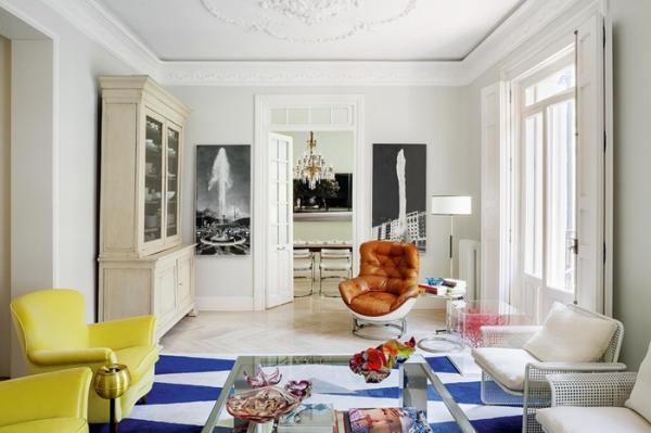 Chỉ một vài gam màu nổi bật cho phòng khách nhưng vẫn đủ để căn phòng thêm chiều sâu cùng nét đẹp ấn tượng. Bên cạnh đó, những vật dụng đơn giản lại tăng thêm vẻ đẹp thân thiện và cân đối, hài hòa cho bảng màu của phòng khách như tủ trang trí gắn tường, ghế đơn, bàn trà hay đèn đứng...
