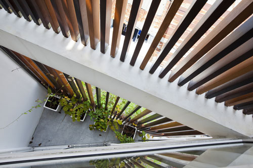 Căn nhà gồm 4 tầng, được xây dựng trên khu đất có diện tích khoảng 32m2 (rộng 4m, dài 8m). Sự sắp xếp không gian bên trong khiến chủ nhân ngôi nhà không hề cảm thấy khó chịu với hình dáng kém vuông vắn của căn nhà, thậm chí, các kiến trúc sư đã tận dụng rất tốt đặc điểm kém hoàn hảo này.