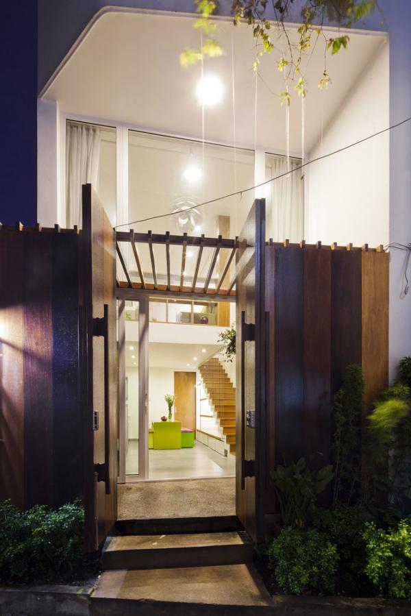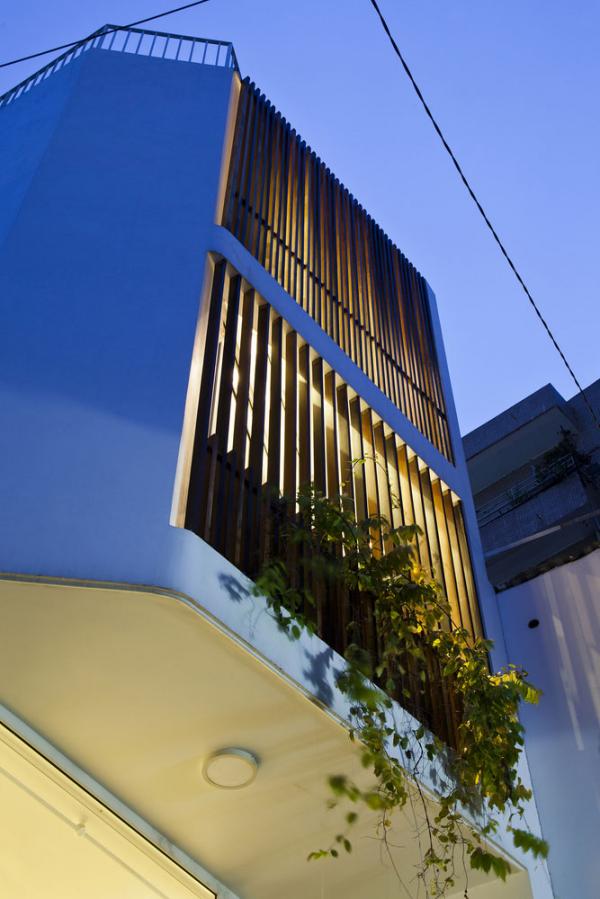 Nằm trong một con hẻm nhỏ ở Phú Nhuận - quận ngoại ô của TP HCM - căn nhà do bộ đôi kiến trúc sư Phạm Thị Mỹ An và Lê Hữu Triết thực hiện - nổi bật so với những căn nhà bám màu thời gian ở bên cạnh bởi sắc trắng trang nhã và thiết kế hiện đại dù mới chỉ nhìn từ bên ngoài.