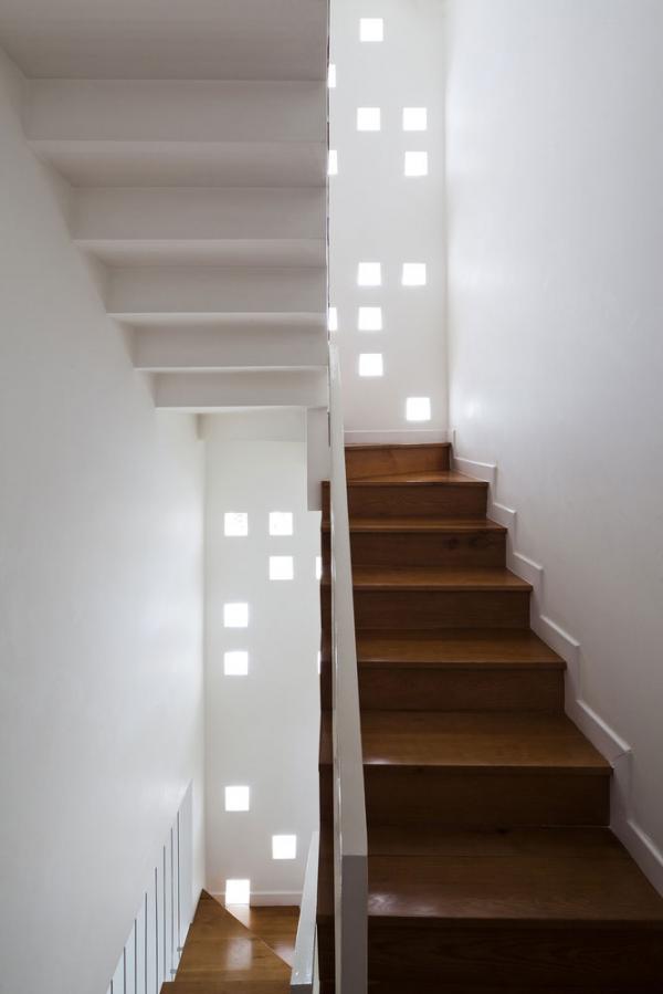 Ngôi nhà cũng được thiết kế để tận dụng ánh sáng tự nhiên triệt để nhất. Không có bất kỳ cửa sổ nào nhưng những ô nhỏ trên tường đảm bảo ánh sáng mà vẫn giữ được sự riêng tư cho ngôi nhà.