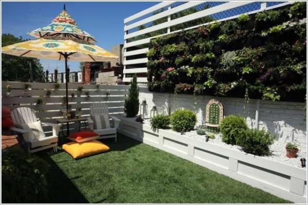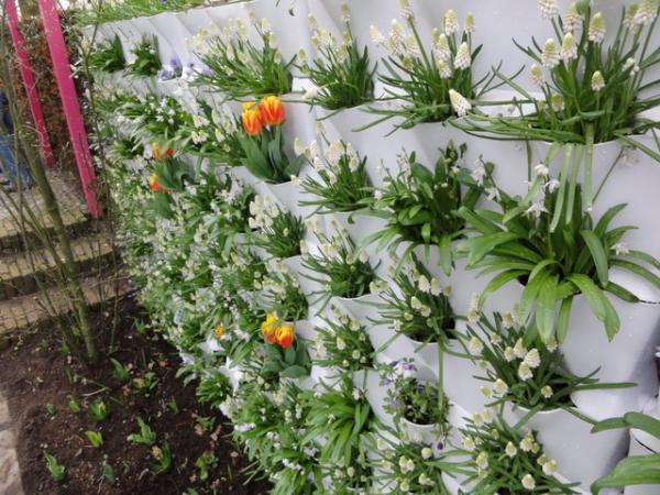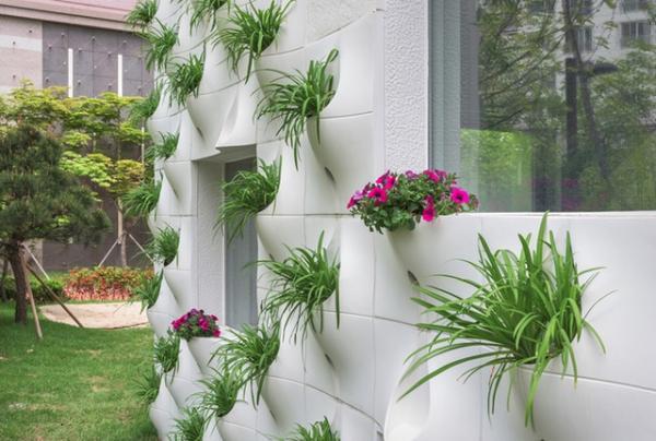 Những tấm trồng cây được đặt xung quanh các bức tường