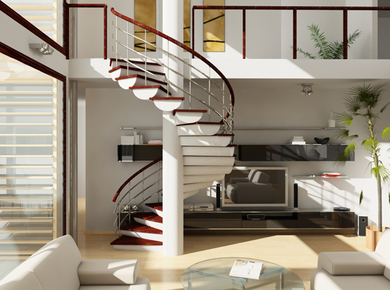 Hình dáng cầu thang hiện nay có rất nhiều loại khác nhau chứ không chỉ là cầu thang thẳng như trước đây. Hiện tại có cầu thang chữ L, cầu thang cong, cầu thang xoắn ốc… để tô điểm thêm cho không gian trong nhà. Nếu như sử dụng loại cầu thang xoắn ốc mọi người chú ý không đặt chúng ở vị trí trung tâm của ngôi nhà. Bởi hình dáng của cầu thang này giống như mũi khoan khi thiết kế giữa nhà nó sẽ chọc thẳng từ trần xuống nền nhà khiến không gian bị chia cắt, mất mát. Theo phong thủy, kiểu cấu trúc này là điềm xấu nên tốt nhất hạn chế sử dụng cầu thang xoắn ốc cho công trình nhà ở.
