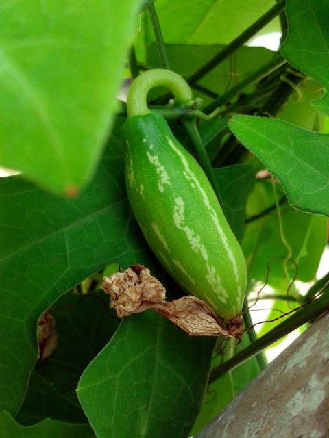 Sau thời gian vất vả gieo hạt, chăm sóc cây, khoảng 2 tháng sau kể từ khi gieo hạt, cây nếu sinh trưởng và phát triển bình thường sẽ cho ra những quả đầu tiên. Quả trưởng thành có hình dáng dài với thân láng có những vân sọc trắng xung quanh.