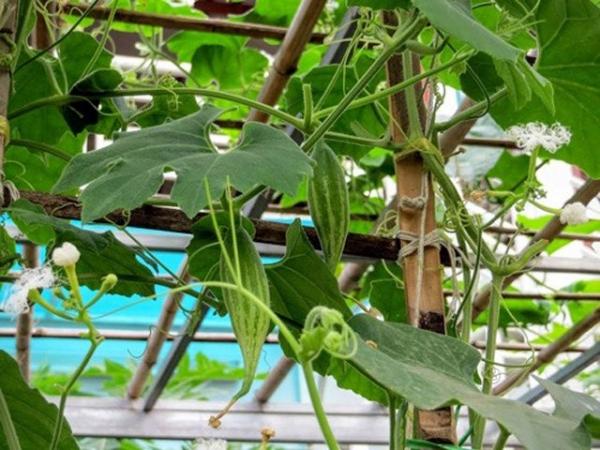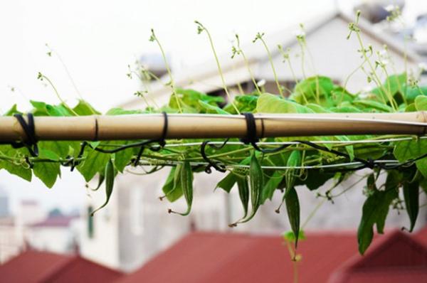 Chỉ một thời gian sau, bạn sẽ thấy lá và các ngọn đâm ra tua tủa khiến toàn bộ giàn được phủ một màu xanh mướt, sau đó khoảng vài ngày cây sẽ ra hoa.