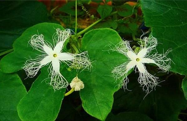 Hoa mướp Nhật (lặc lè) thường nhỏ có màu trắng tinh khiết trông rất đẹp, khi nở năm cánh bung tỏa cùng những sợi tơ trắng dài li ti xòe rộng. Loài hoa này thu hút rất nhiều loài ong bướm đến hút mật thụ phấn.